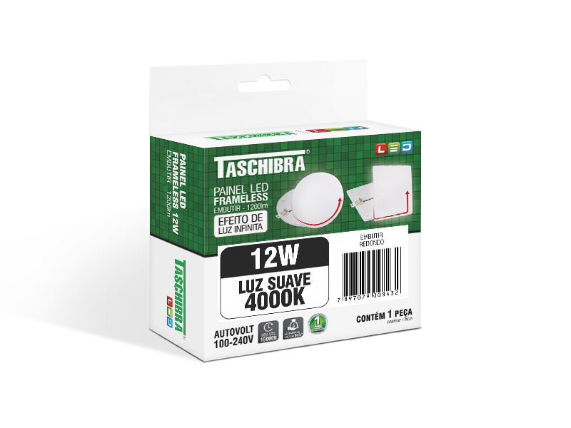 PAINEL LED FRAMELESS EMBUTIR 12W REDONDO 4000K