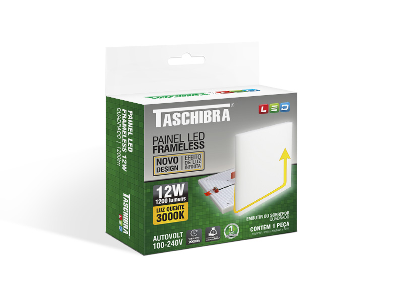 PAINEL LED FRAMELESS 12W QUADRADO 3000K