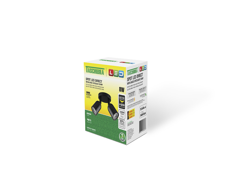 SPOT LED DIRECT MR16 BASE CIRCULAR 2X4W 3000K PRETO