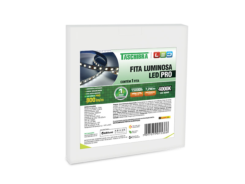 Características: Produto com baixa tensão (12V) com necessidade de uma fonte de alimentação para seu funcionamento na rede elétrica. Com fita auto adesiva.