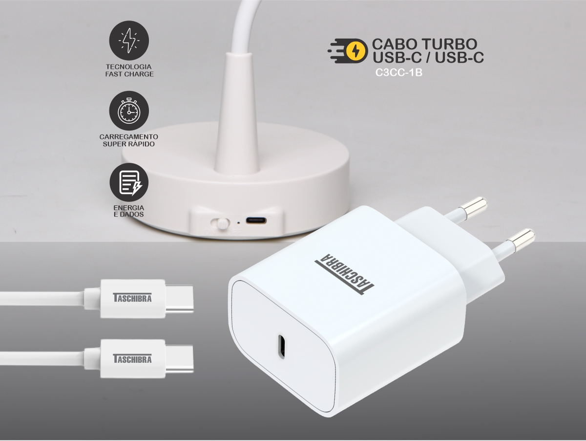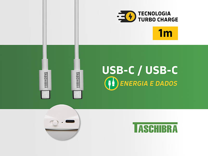 CABO TURBO TASCHIBRA C3CC-1B USB-C USB-C 1m 3A BRANCO