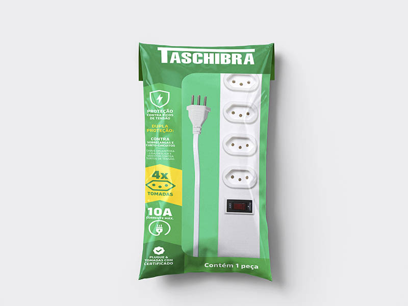 PROTETOR ELETRÔNICO TASCHIBRA 4 TOMADAS 2P+T 1m 10A BRANCA
