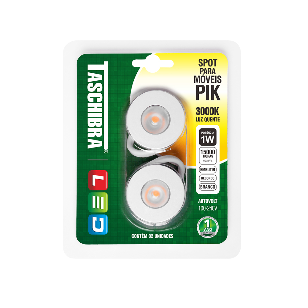 SPOT PARA MÓVEIS LED PIK REDONDO 1W 3000K BRANCO 2PÇS