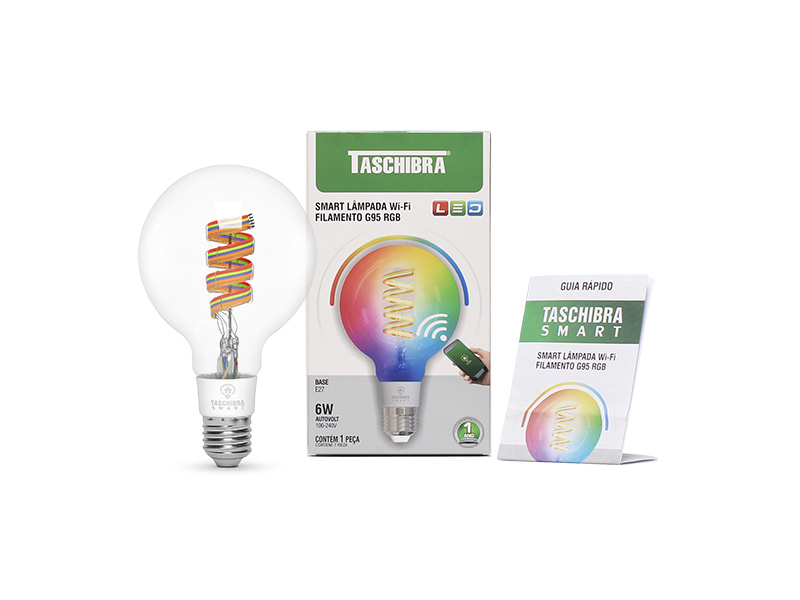 Características: Instale várias unidades e controle pelo mesmo aplicativo Taschibra. 16 milhões de cores, ajuste de intensidade, timer programável, luz para game, relaxar ou focar, luz para despertar.