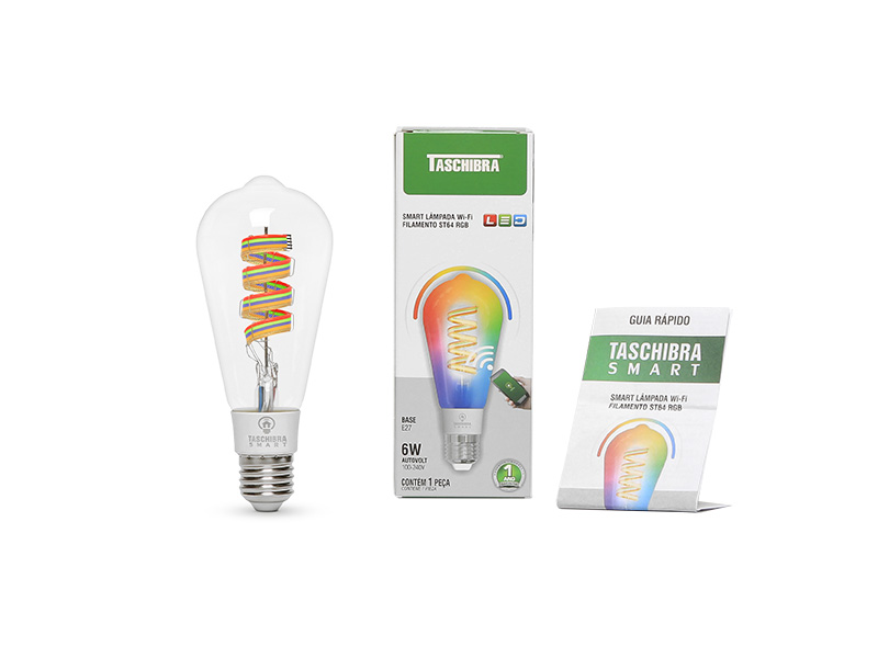 Características: Instale várias unidades e controle pelo mesmo aplicativo Taschibra. 16 milhões de cores, ajuste de intensidade, timer programável, luz para game, relaxar ou focar, luz para despertar.