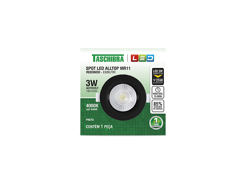 SPOT EMBUTIR REDONDO ALLTOP LED MR11 3W 4000K 38º PR